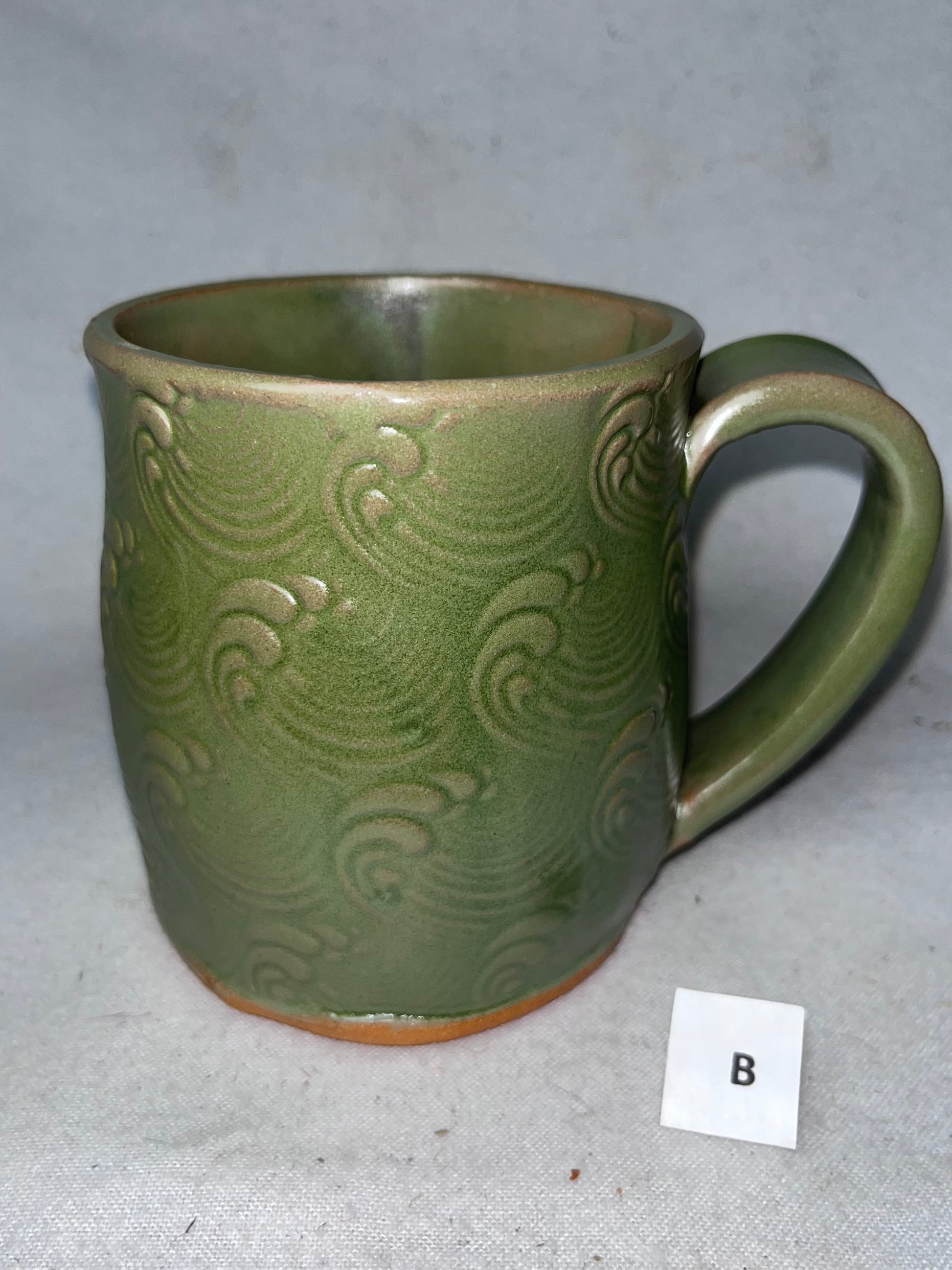 Enjoy coffee, tea, or your favorite beverage in a handmade ocean wave mug that holds approx. 16 fluid ounces. Mugs are listed for individual sale but can be bought in multiples.