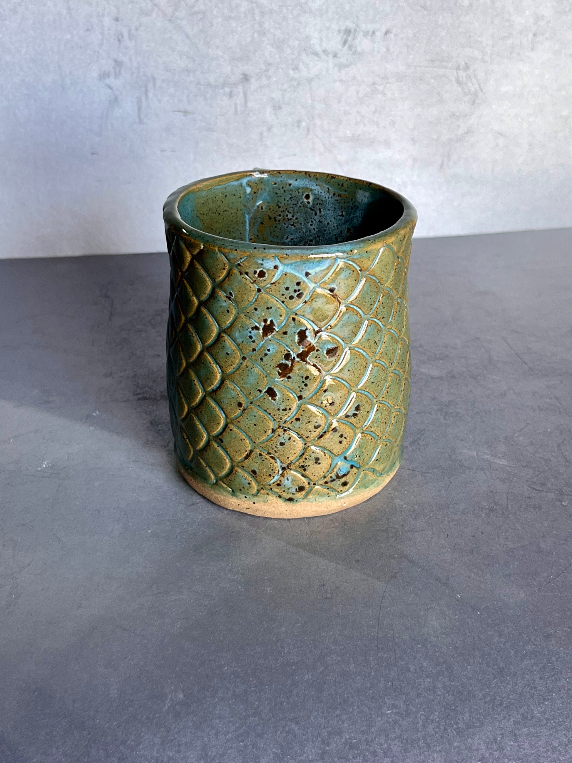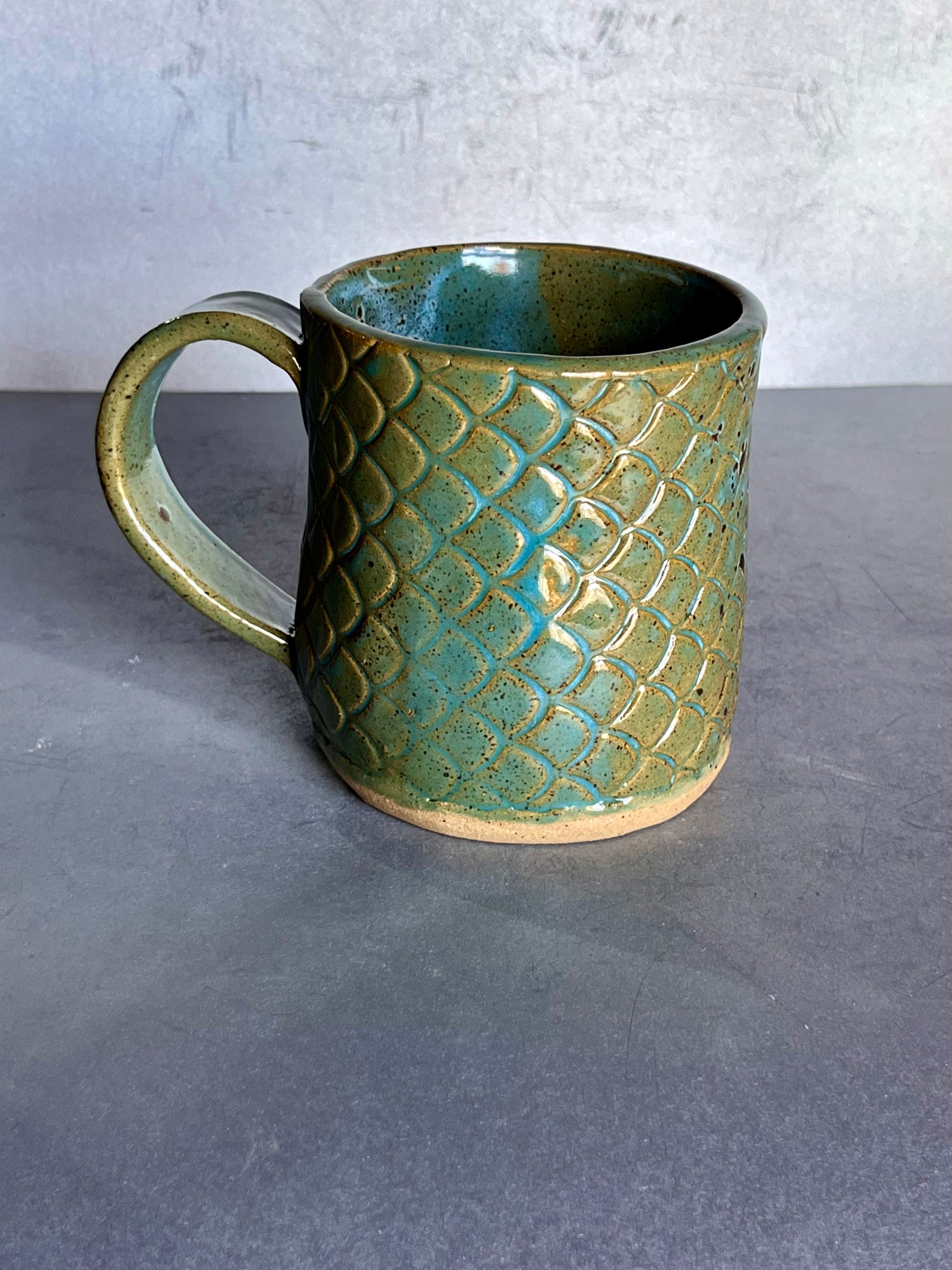 Enjoy your coffee, tea, hot chocolate, or favorite beverage in a handmade slab-built green mermaid mug.