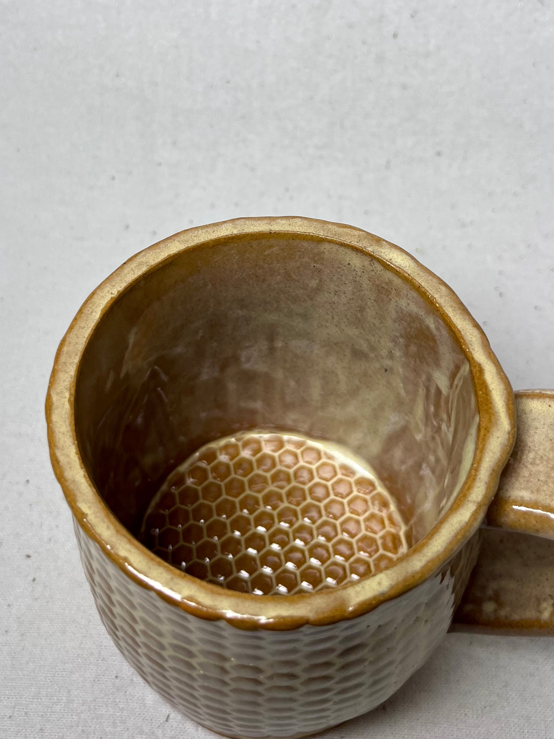 Enjoy your coffee, tea, hot chocolate, or favorite beverage in a handmade bee honeycomb mug that holds approximately 16 fluid ounces. Perfect for the beekeeper and honey lover in your life.